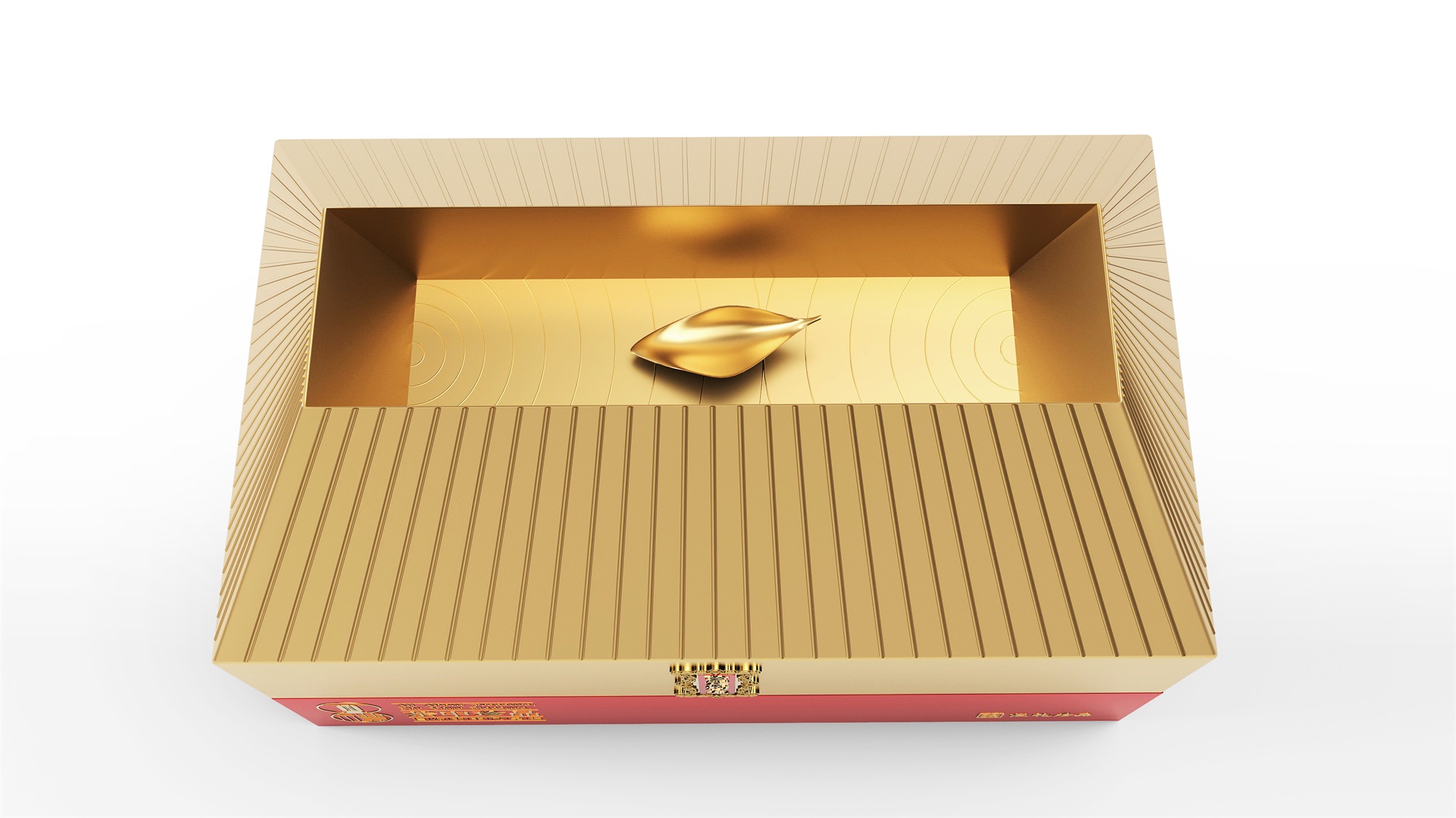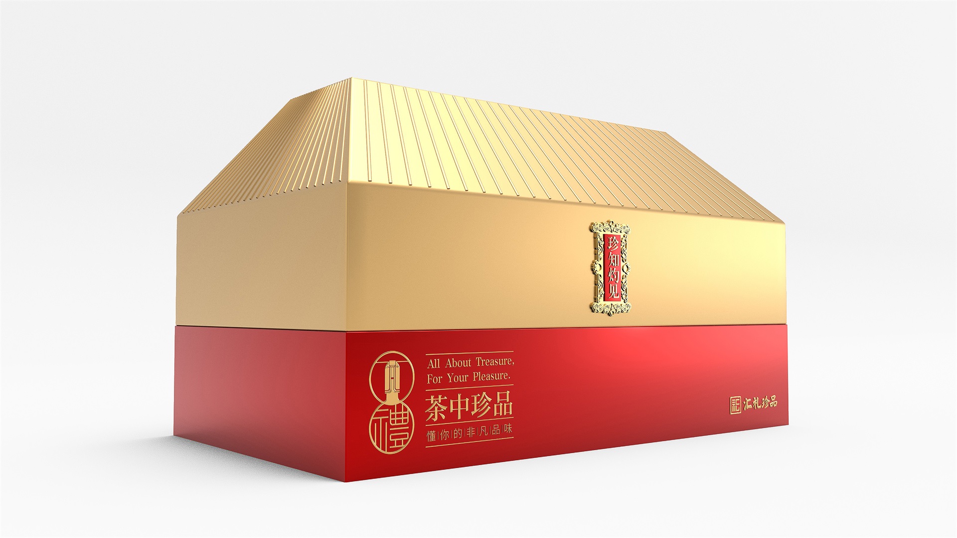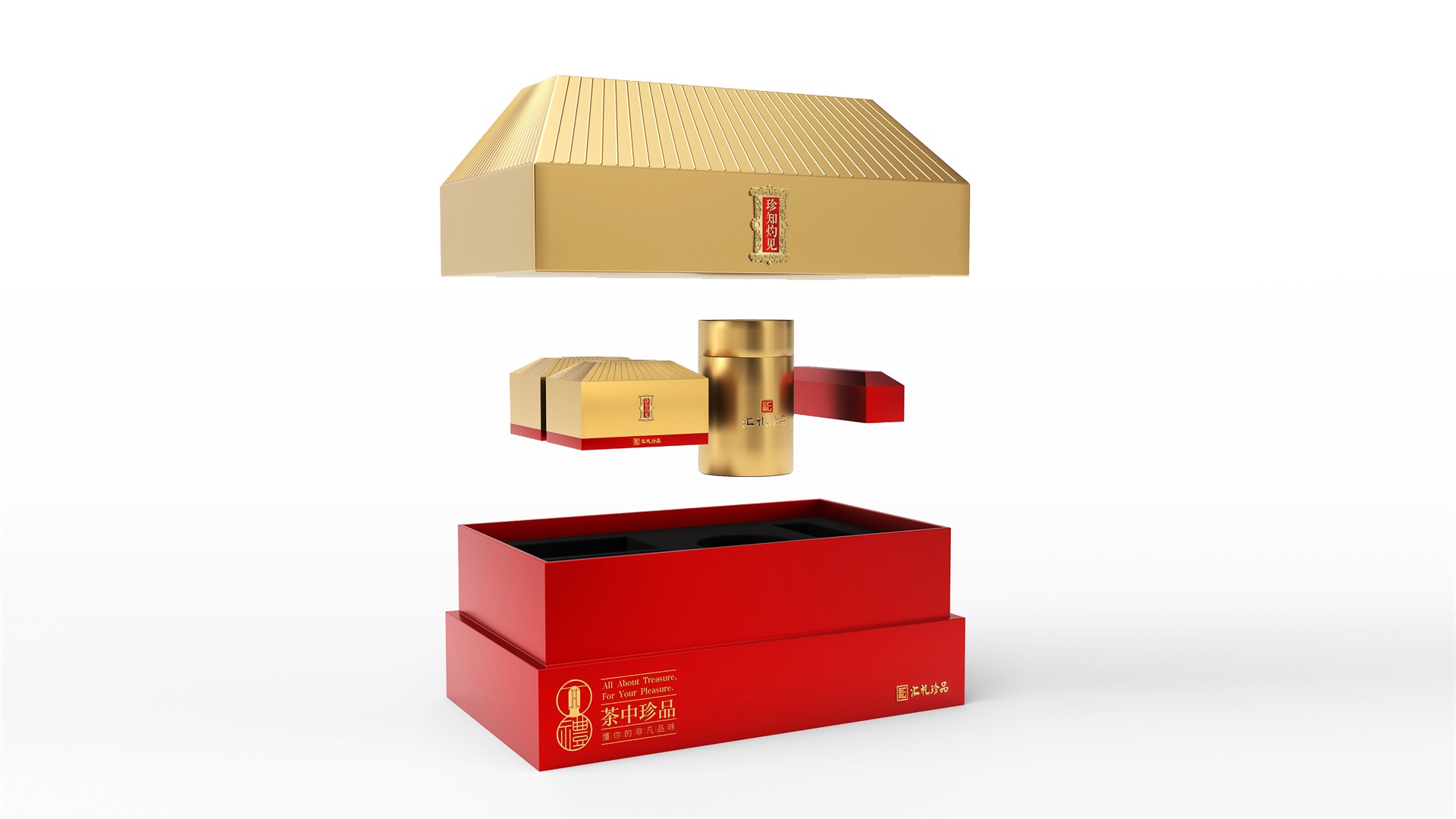 汇礼珍品包装设计,基于产品品级为茶中王者级别,J9·九游会「中国」官方网站所以包装整体造型采用中国古代地位的皇家元素:宫殿为设计灵感进行设计,包装上盖为金色宫殿屋檐造型,斜面上也装饰了代表瓦片的条纹,上盖中部内陷,底部使用水纹铺底,在水纹上飘着一片金色的茶叶,高山流水觅知音,在一个上盖营造出了基于高端气质上,茶道与人道相融的意境画面;在上盖的正面中部,使用宫殿匾额形式作为展示包装的品类名称,将包装的宫殿造型进一步完善。支撑金色宫殿下方的红色地台作为包装下部,在正面放置文字信息和品牌标志。整体采用天地盖的形式,使开盖具备仪式感。内部分包装与外部形式大体相同,但有所以简略,保证整体性的同时也保证整体包装不会过于繁复,保持平衡。
