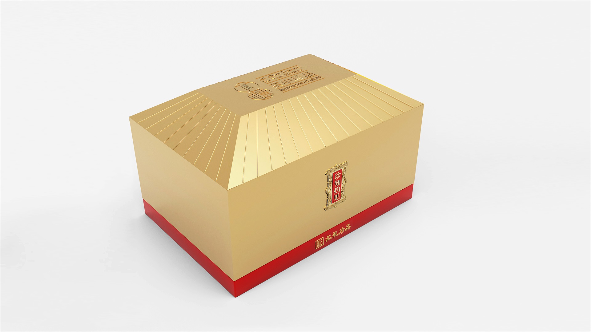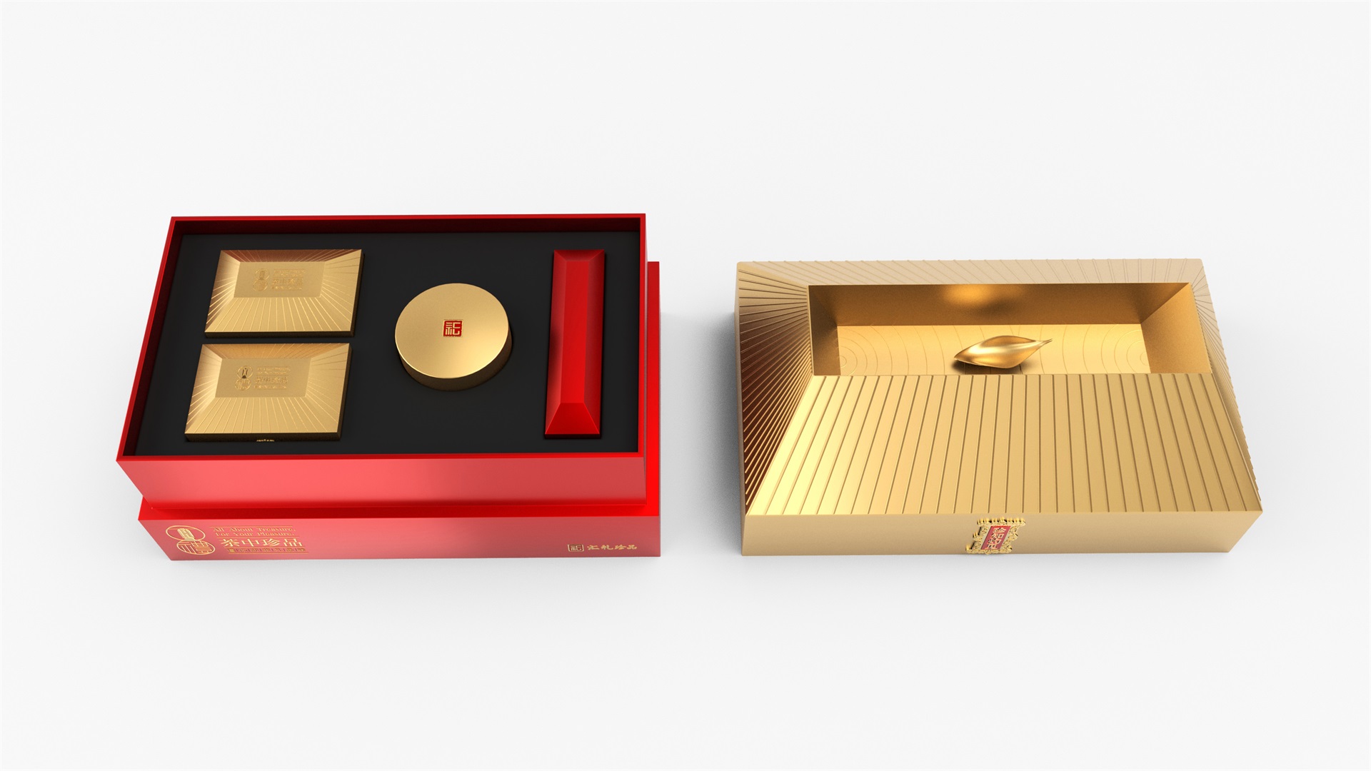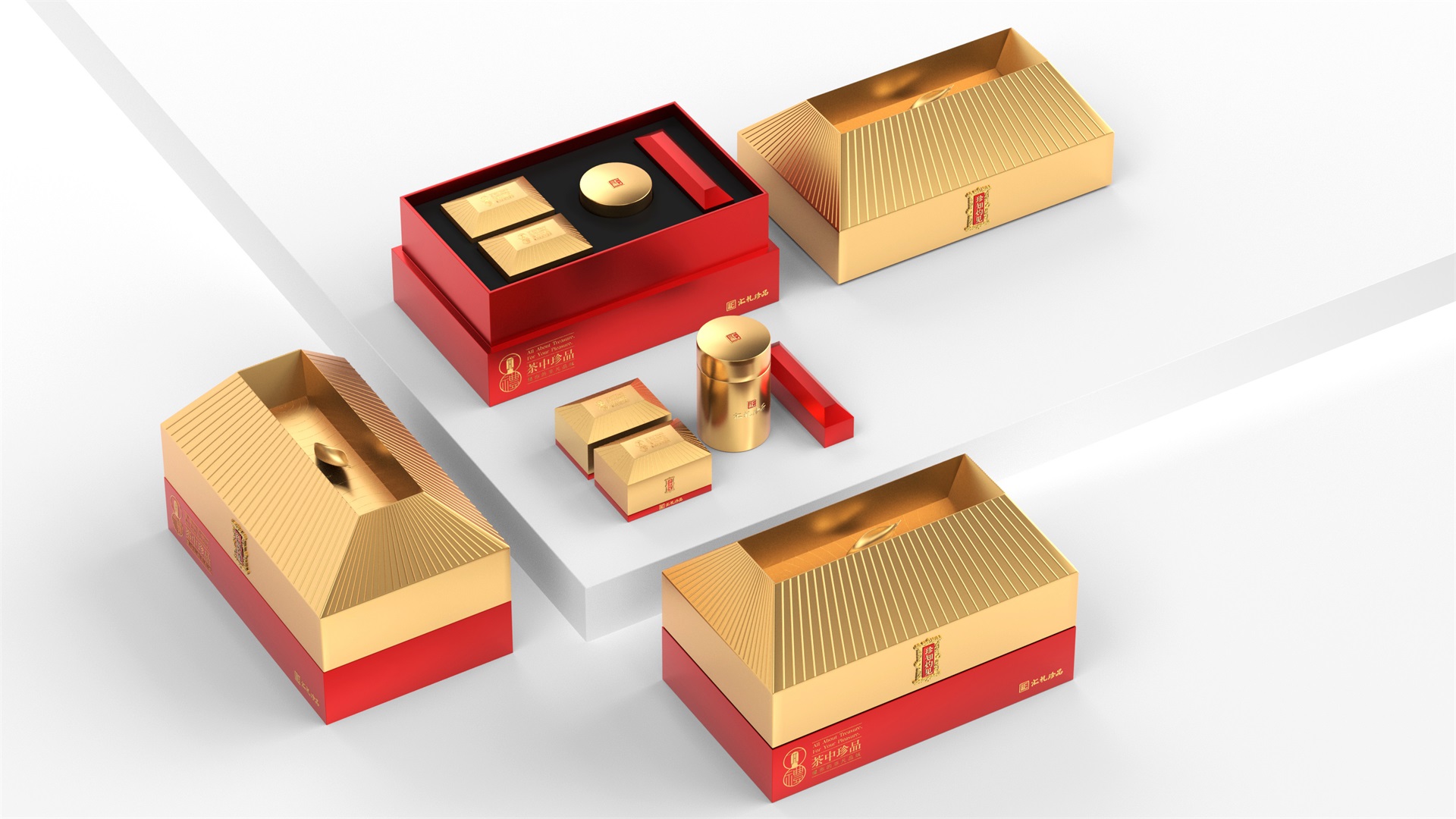 汇礼珍品包装设计,基于产品品级为茶中王者级别,J9·九游会「中国」官方网站所以包装整体造型采用中国古代地位的皇家元素:宫殿为设计灵感进行设计,包装上盖为金色宫殿屋檐造型,斜面上也装饰了代表瓦片的条纹,上盖中部内陷,底部使用水纹铺底,在水纹上飘着一片金色的茶叶,高山流水觅知音,在一个上盖营造出了基于高端气质上,茶道与人道相融的意境画面;在上盖的正面中部,使用宫殿匾额形式作为展示包装的品类名称,将包装的宫殿造型进一步完善。支撑金色宫殿下方的红色地台作为包装下部,在正面放置文字信息和品牌标志。整体采用天地盖的形式,使开盖具备仪式感。内部分包装与外部形式大体相同,但有所以简略,保证整体性的同时也保证整体包装不会过于繁复,保持平衡。